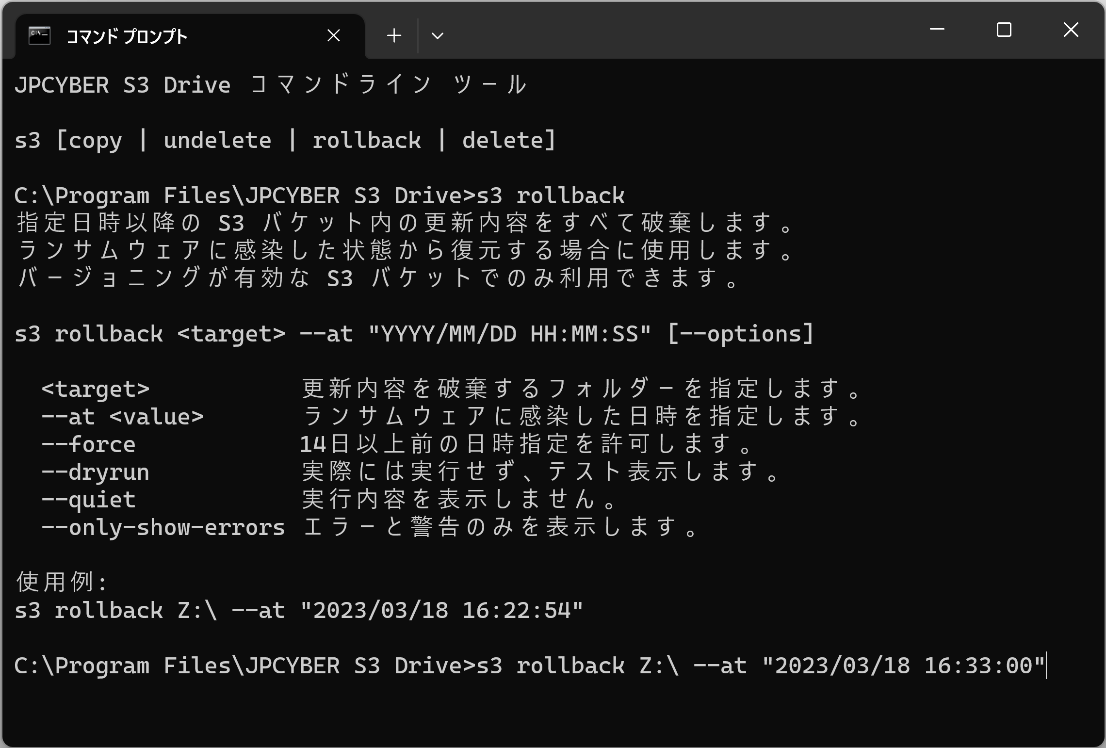 ※ ランサムウェア復元機能を利用するには、あらかじめ S3 ストレージ側でバージョニングの設定を有効にしておく必要があります。