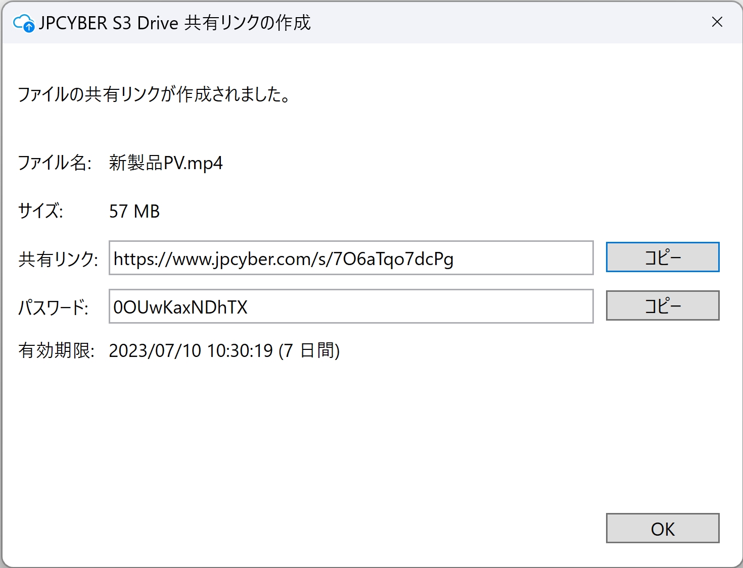 共有リンクの作成エクスプローラーでファイルを右クリックして、共有リンク(Amazon S3 署名付き URL)を作成できます